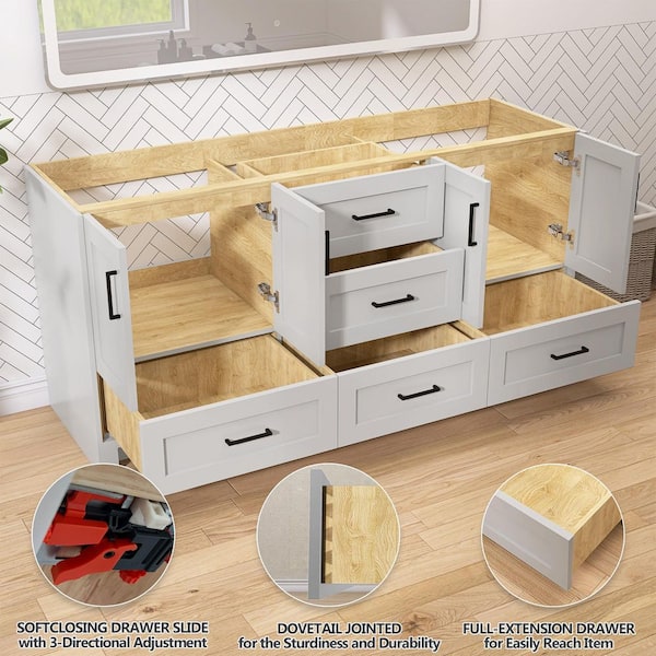 72 in. Bath Vanity Cabinet without Top in Light Gray Freestanding Solid Wood Bathroom Vanity Base Assembled