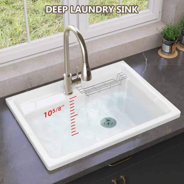 All-in-One 30 in. W x 22in. Drop-in Topmount Single Bowl Laundry Utility Sink with Drainer Solid Surface in Glossy White