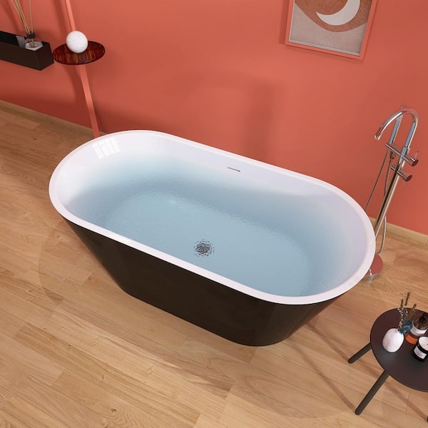 Ane 59 in. x 29.5 in. Free Standing Soaking Tub Flatbottom Acrylic Freestanding Bathtub with Pop-Up Drain in Gloss Black