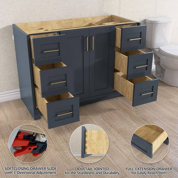 Bvio 48 in. W x 21.5 in. D x 33.5 in. H Bath Vanity Cabinet without Top Solid Wood Vanity Base in Navy Blue Assembled