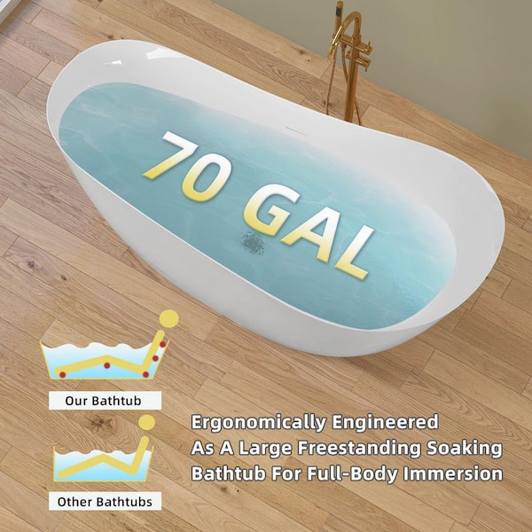 Deny 65 in. x 29.52 in. Freestanding Soaking Tub Double Slipper Stand Alone Bathroom Bathtub Chrome Drain in White