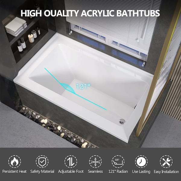 Dor 54 in. x 32 in. Rectangular Acrylic Soaking Drop-In Bathtub with Right Drain Hole in Glossy White