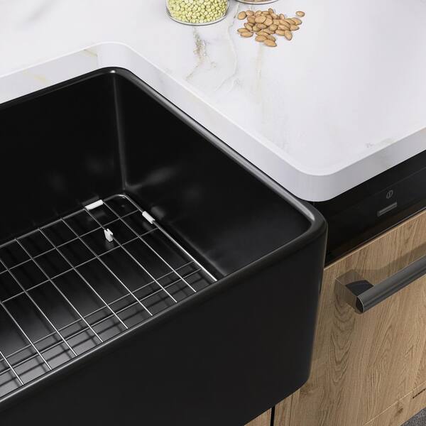 Ebo 36 in. Fireclay Farmhouse Apron Front Single Bowl Kitchen Sink Matte Black with Bottom Grid and Strainer