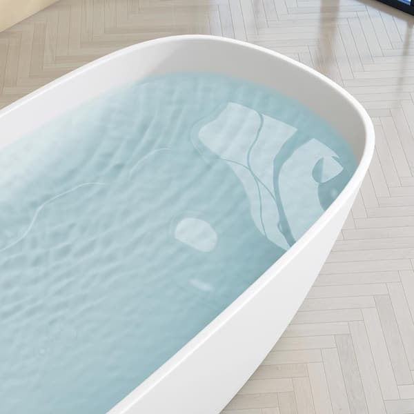Ece 67 in. x 33 in. Solid Surface Stone Resin Freestanding Soaking Bathtub Stand Alone Tub Center Drain in Matte White