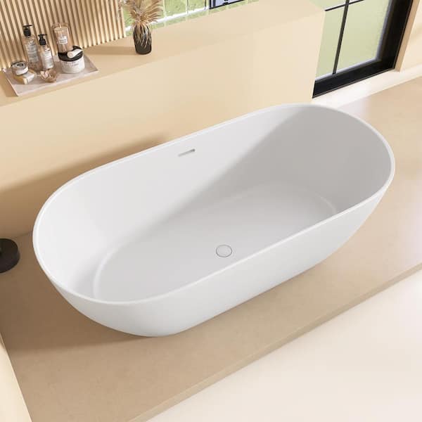 Lux 63 in. x31.5 in. Solid Surface Stone Resin Freestanding Soaking Bathtub with Center Drain Stand Alone in Matte White