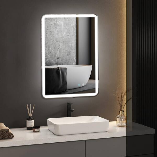 Mac 24 in. W x 36 in. H Rectangular Frameless Backlit Defogger Wall Mounted LED Light Bathroom Vanity Mirror in Silver