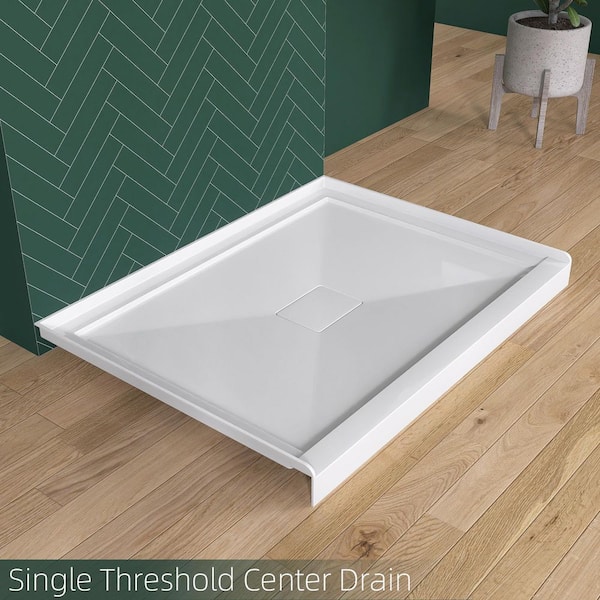 Moca 48 in. L x 32 in. W Single Threshold Alcove Shower Pan Base w/ Center Drain and Cover Acrylic Shower Tray in White