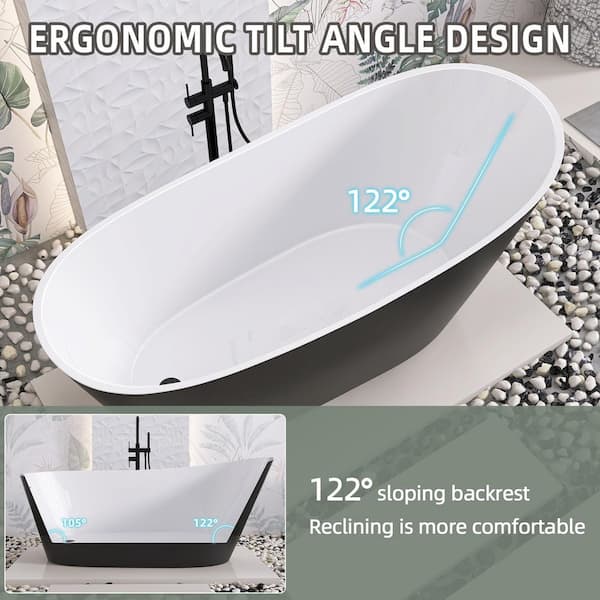 • 67 inch matte black freestanding tub with 15.75 in. deep soaking