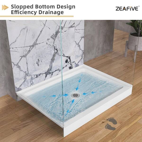 Nsip 48 in. L x 36 in. W Rectangular Non-Slip Alcove Single Threshold Shower PanBase w/ Center Drain White Bathroom Tray