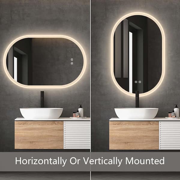 Ode 20 in. W x 32 in. H Oval Frameless Wall Lighted HD LED Bathroom Vanity Mirror with Anti-Fog Dimmable Memory Function