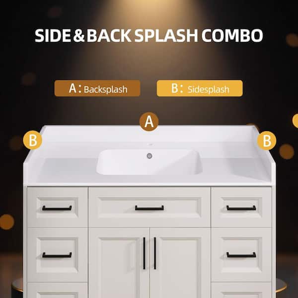 Syba 48 in. L x3. 5 in. H Solid Surface Cultured Marble Bathroom Vanity Top Backsplash for Countertop Glossy Pure White
