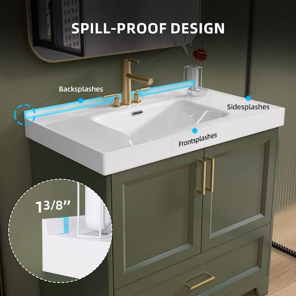 Ter 37 in. W x 22 in. D Solid Surface White Rectangular Single Sink Vanity Top with Backsplash Basin 3-Holes Countertop