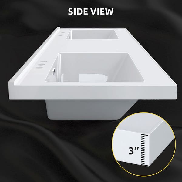 Ter 61 in. W x 22 in. D Solid Surface White Rectangular Double Sink Vanity Top with Backsplash and Basin 3-Hole in White