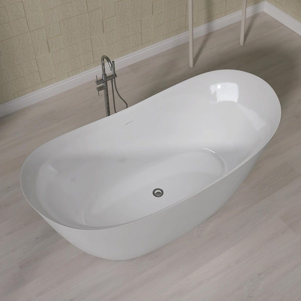 Van 63 in. L x 31.5 in. W Acrylic Freestanding Soaking Bathtub Double Slipper Tub with Center Drain in Glossy White