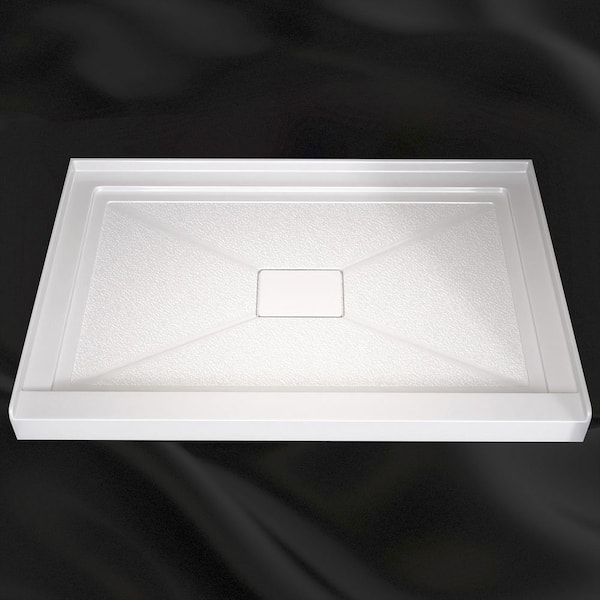 Voe 48 in. L x 32 in. W Single Threshold Alcove Shower Pan Base with Center Drain & Cover in White Acrylic Non-Slip Tray
