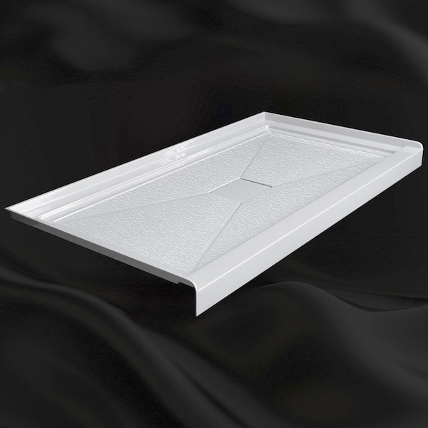 Voe 60 in. L x 32 in. W Single Threshold Alcove Shower Pan Base with Center Drain & Cover in White Acrylic Non-Slip Tray