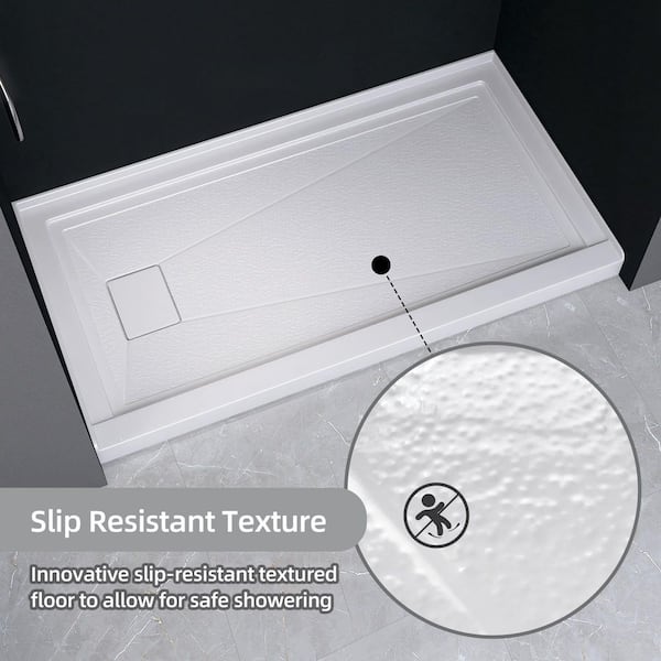 Voe 60 in. L x 32 in. W Single Threshold Alcove Shower Pan Base with Left Drain and Cover in White Acrylic Non-Slip Tray
