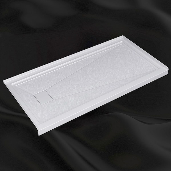 Voe 72 in. L x 36 in. W Single Threshold Alcove Shower Pan Base with Left Drain and Cover in White Acrylic Non-Slip Tray