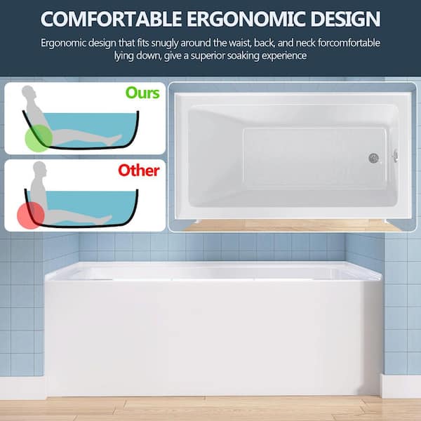 Vub 60 in. x 32 in. Alcove Soaking Bathtub with Right Drain Hole Rectangular Apron Skirt Acrylic Tub in White