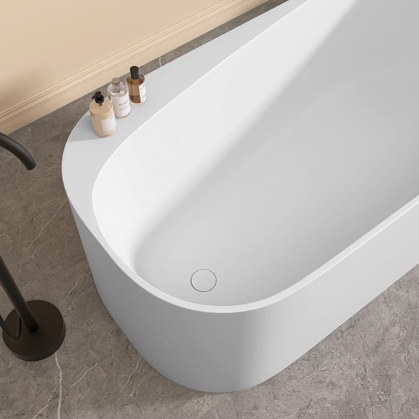 Zeo 63 in. x32 in. Solid Surface Stone Resin Freestanding Soaking Bathtub with Side Drain & Storage Space in Matte White
