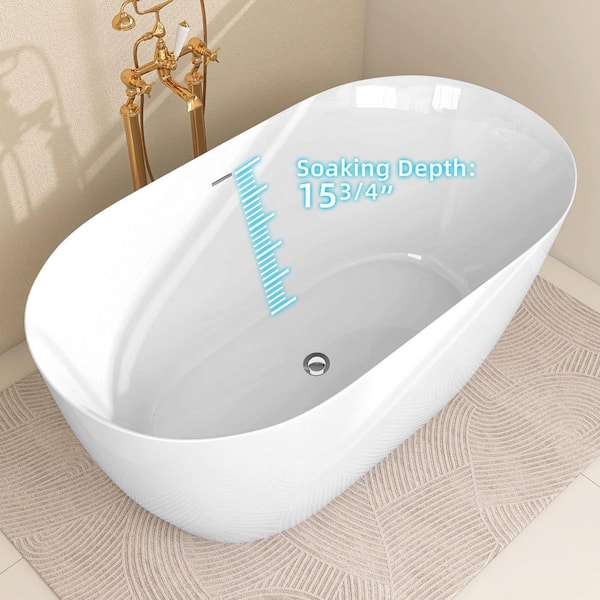 Zey 47 in. x 27.5 in. Acrylic Freestanding Soaking Bathtub Flatbottom Stand Alone Small Tub with Pop-Up Drain in White