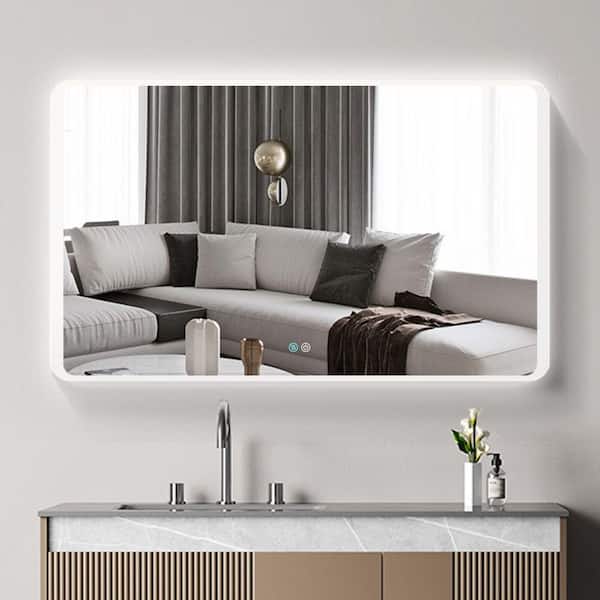 Zml 60 in. W x 36 in. H Large Rectangular Frameless Anti-Fog Wall Mounted LED Light Bathroom Vanity Mirror in Silver