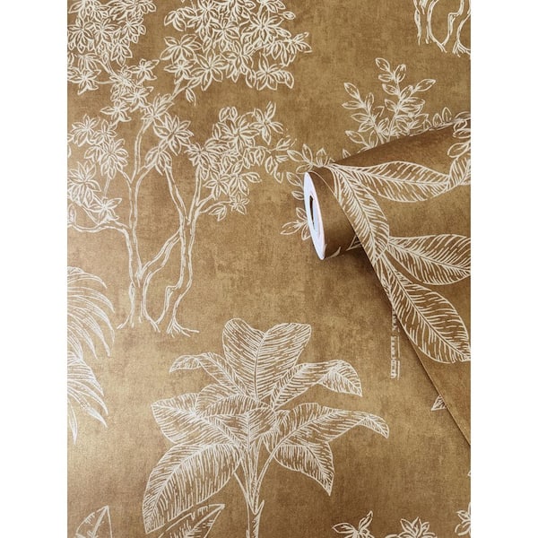 Zen Collection Brown Floating Foliage Metallic Sheen Finish Non-Pasted Non-Woven Wallpaper Roll