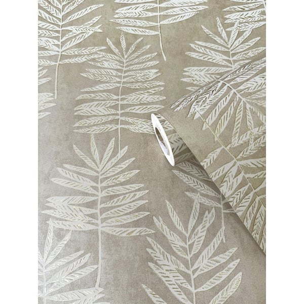 Zen Collection Cream/White Tumbling Leaf Sheen Finish Non-Pasted Non-Woven Wallpaper Roll