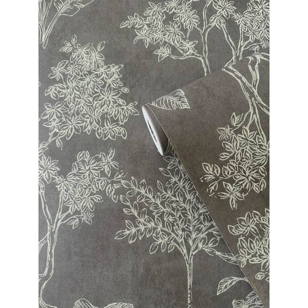 Zen Collection Dark Grey Floating Foliage Metallic Sheen Finish Non-Pasted Non-Woven Wallpaper Sample
