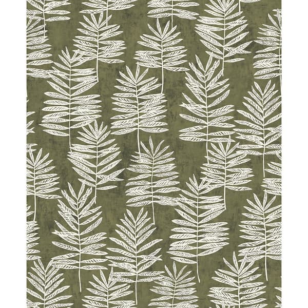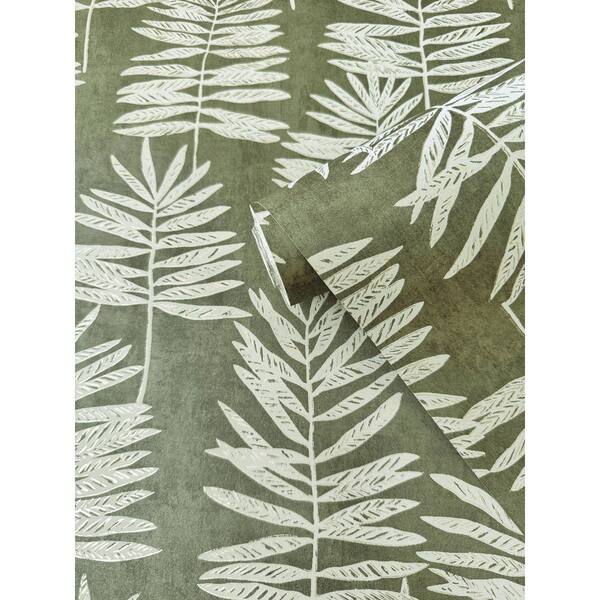 Zen Collection Green Tumbling Leaf Sheen Finish Non-Pasted Non-Woven Wallpaper Roll