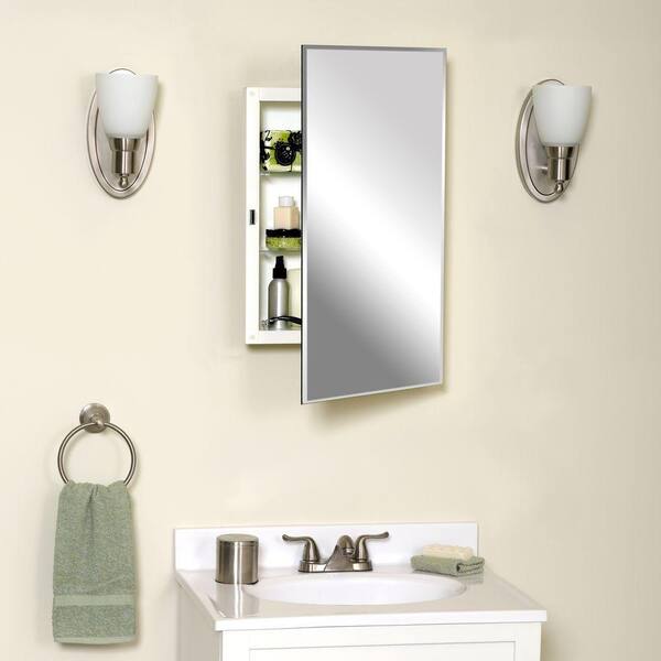 16 in. W x 26 in. H Frameless Prism Beveled Swing Door Recessed Medicine Cabinet in Silver Metallic