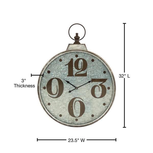 Wood Textured Numbers Framed in a Round Rustic Metal clock