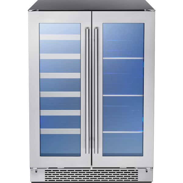 Presrv 24 in. 21-Bottle and 64-Can French Door Dual Zone Wine and Beverage Cooler
