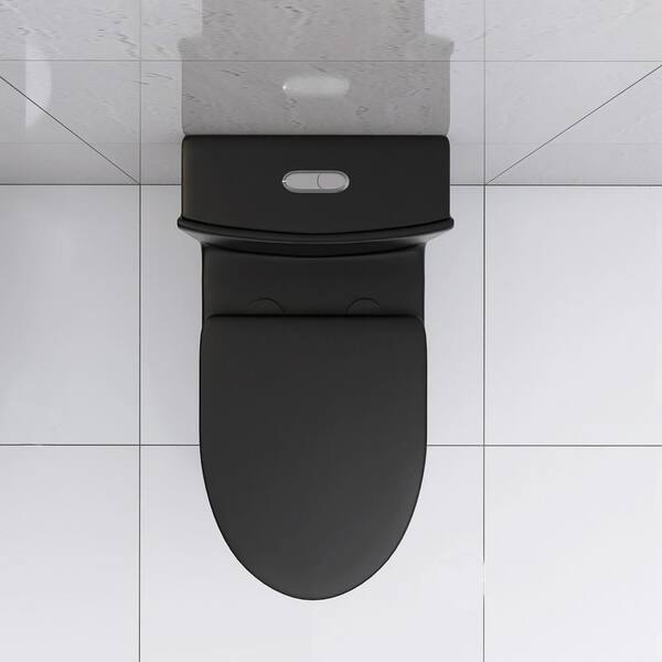 1-Piece 1.1/1.6 GPF Dual Flush Elongated Toilet with Soft Closing Seat in Black