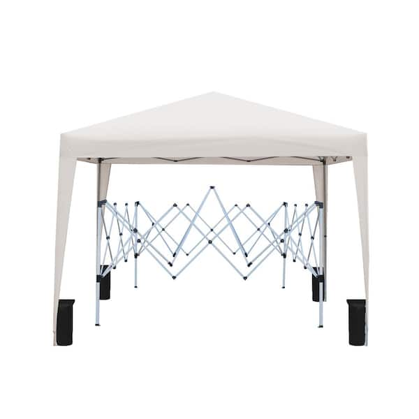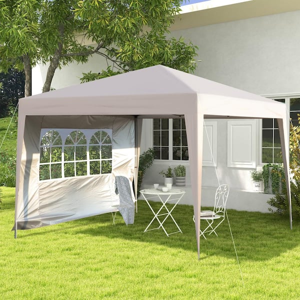 10 ft. x 10 ft. Beige Pop Up Canopy Portable Outdoor Canopy with 2-Removable Sidewalls, Carrying Bag and 4pcs Weight Bag