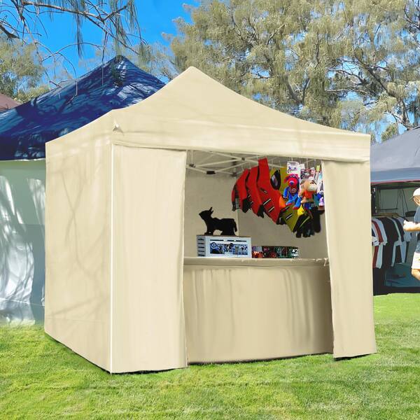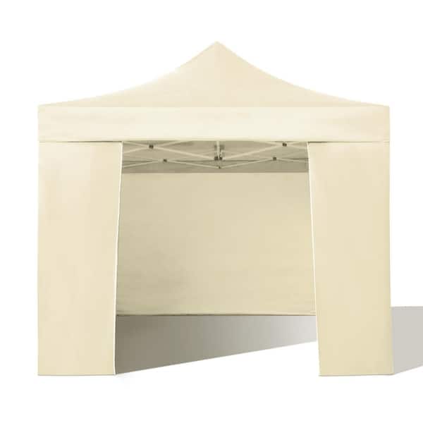 10 ft. x 10 ft. Beige Pop Up Canopy Tent with 4 Removable Sidewalls, with Fence and Portable Roller Bag