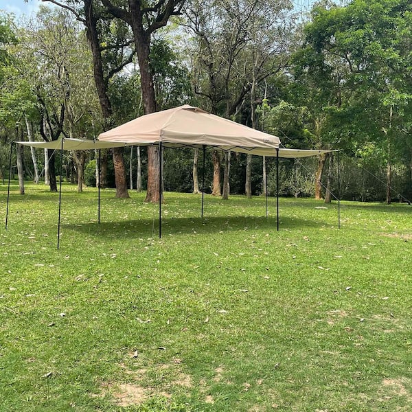 10 ft. x 10 ft. Khaki Outdoor Pop Up Canopy Tent with 2 Shelters, 2 sidewalls Silver-Coated and Roller Bags
