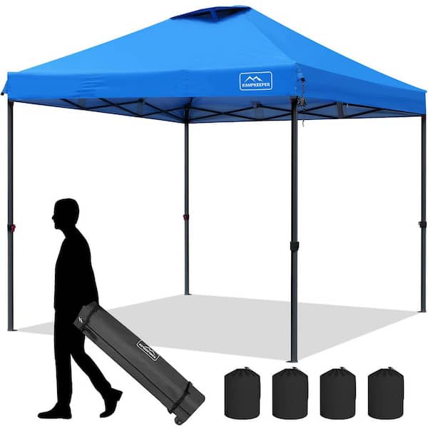 10 ft. x 10 ft. Light Blue Pop-Up Canopy with Wheeled Carrying Bag, 4 Ropes and 4 Stakes