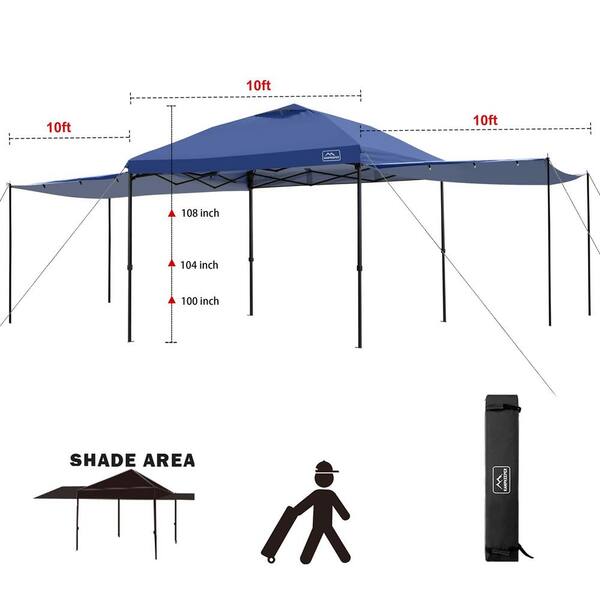 10 ft. x 10 ft. Navy Blue Pop up Canopy Tent with 2 shelters,with 4 Poles, 4 Sandbags,8 Ropes,12 Stakes,1 Roller Bags