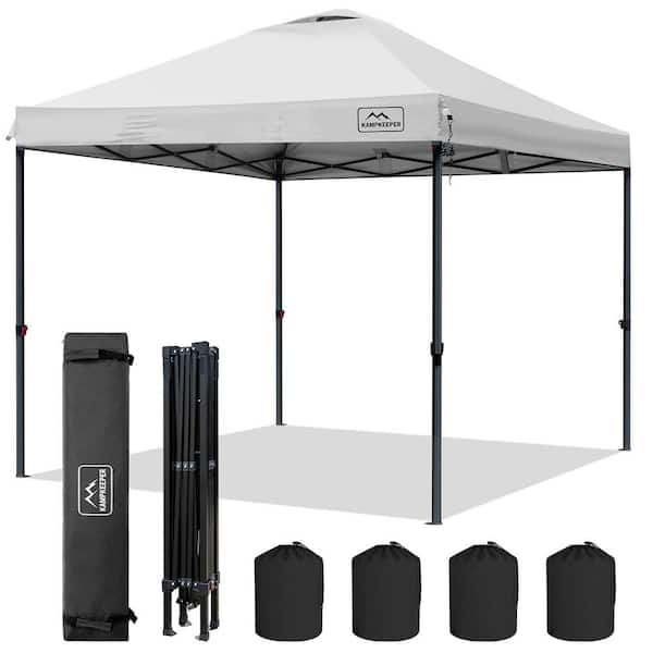 10 ft. x 10 ft. White Pop-Up Canopy with Wheeled Carrying Bag, 4 Ropes and 4 Stakes
