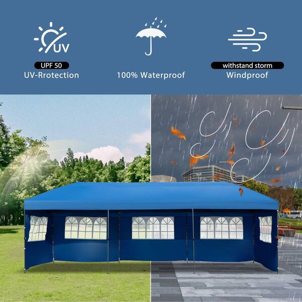 10 ft. x 30 ft. Pop Up Canopy with Sidewalls for Parties with Wheeled Bag in Blue