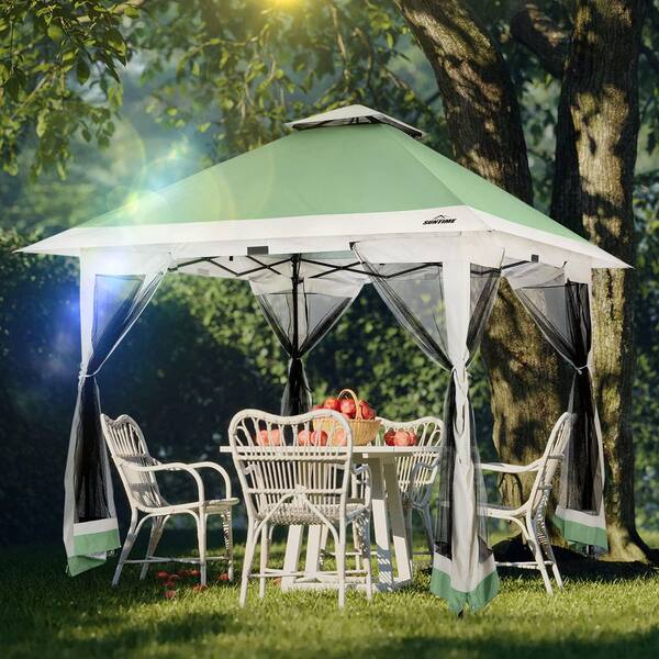 12 ft. x 12 ft. Olive Outdoor Instant Pop Up Gazebo Canopy Tent with Netting and Sidewalls for Outdoor Activities