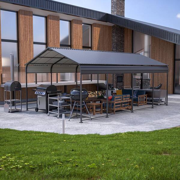12 ft. x 20 ft. Black Metal Outdoor Carport, Car Shelter, Heavy Duty Galvanized Car Shelter for Car Boat Truck and SUVs