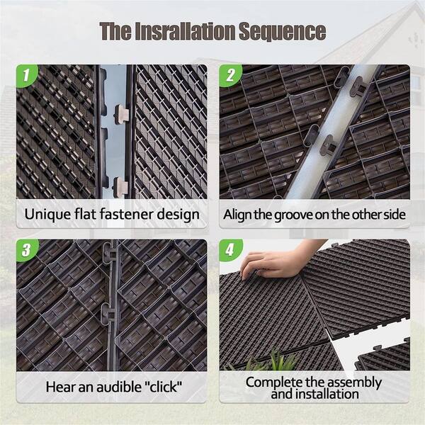 12 in. x 12 in. Square Composite Decking Tiles, 4 Slat Plastic Outdoor Flooring Tile (Dark Brown, Pack of 27)
