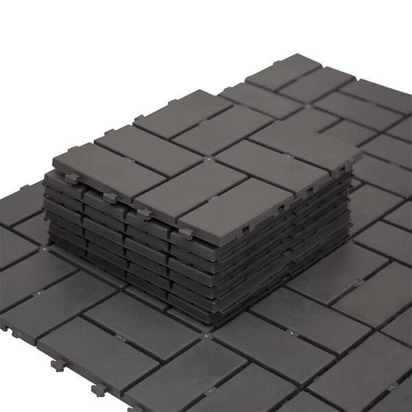 12 in. x 12 in. Square Composite Decking Tiles, Four Slat Plastic Outdoor Flooring Tile (Gray, Pack of 27)