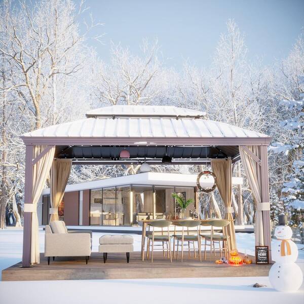 14 ft. x 10 ft. Brown Aluminum Framed Double-Tier Hardtop Gazebo for Backyard