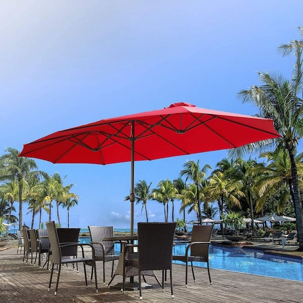 15 ft. x 9 ft. Double-Sided Market Umbrella Outdoor Patio Umbrella with Crank Air Vents in Red