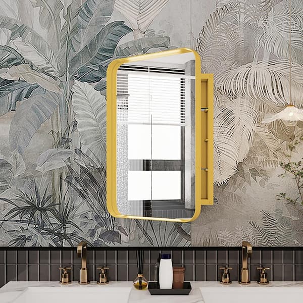 16 in. W x 24 in. H Rectangular Gold Framed Wall Mount or Recessed Medicine Cabinet with Mirror