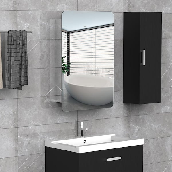 18 in. W x 26 in. H Rectangular Stainless Steel Frameless Recessed Medicine Cabinet with Mirror and Sliding Door