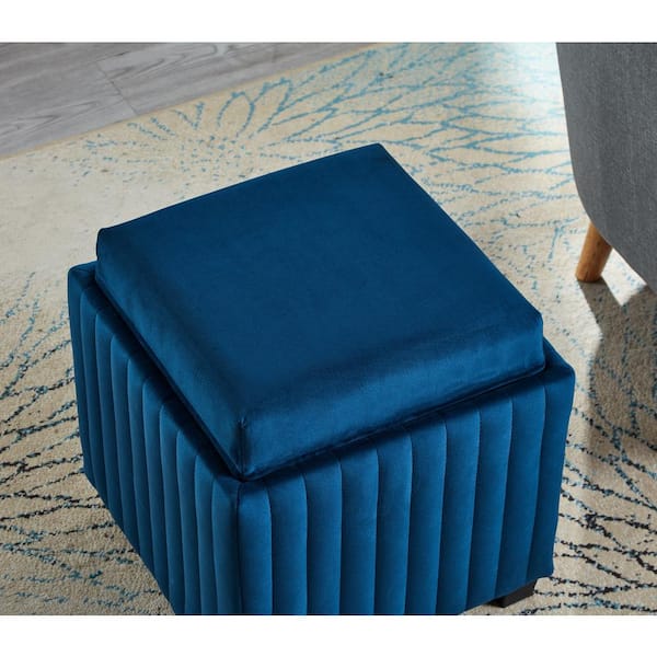 18 in. Wide Square End Table CubeStorage Ottoman Bench in Navy Blue with Coffee Tray for Living Room Bedroom